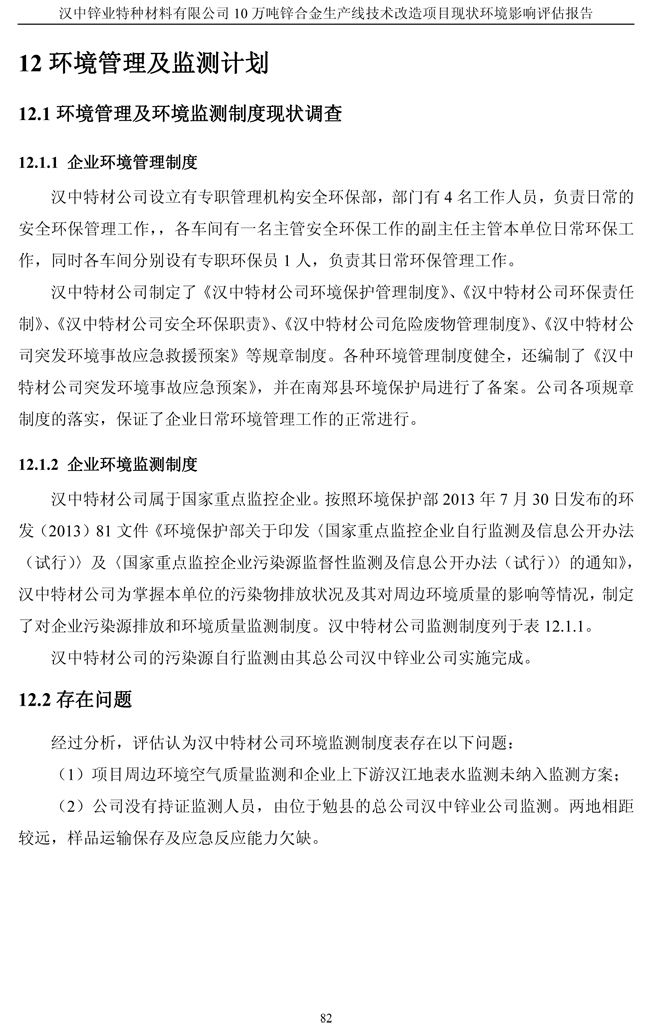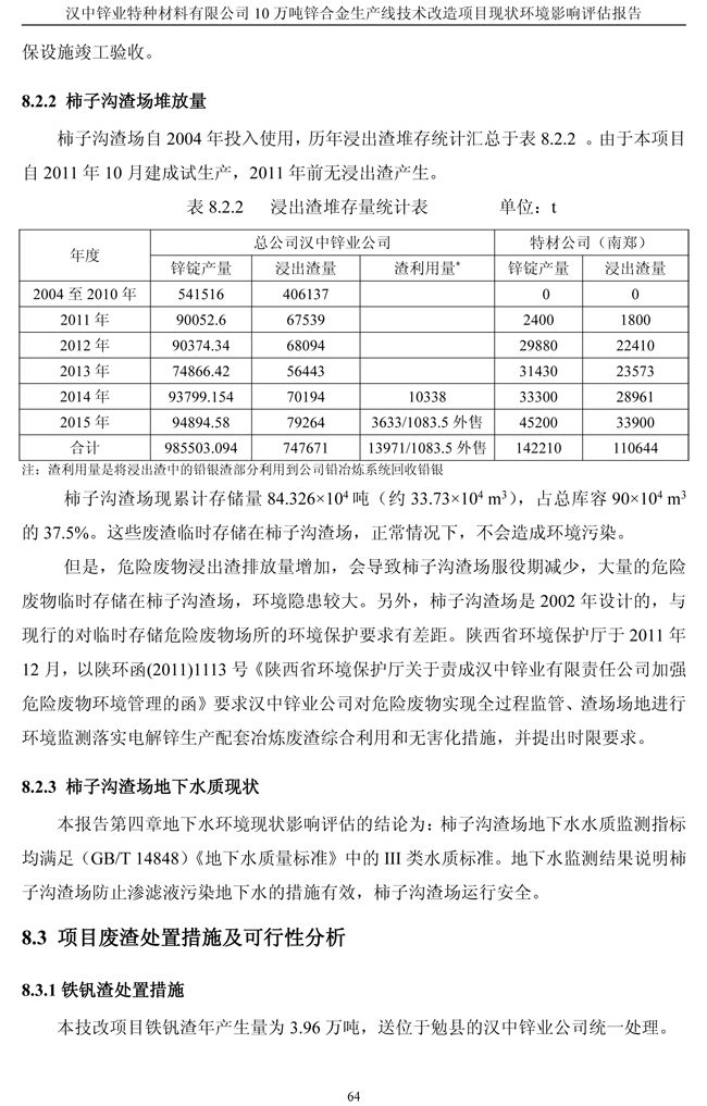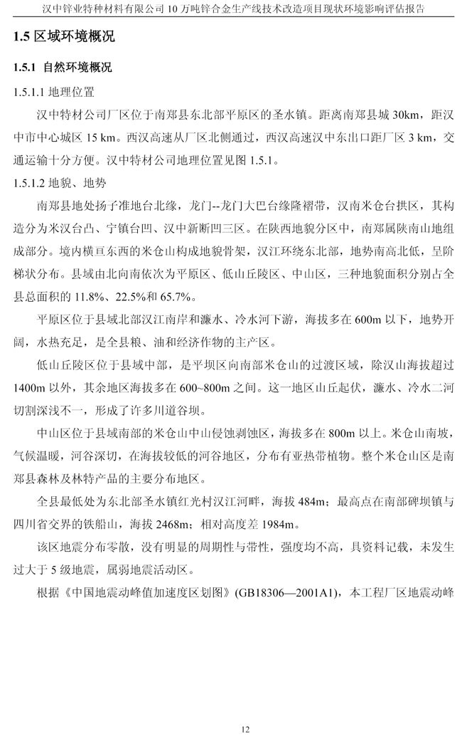 項目實施單位:漢中鋅業有限責任公司 評估報告編制單位:西安建筑科技大學