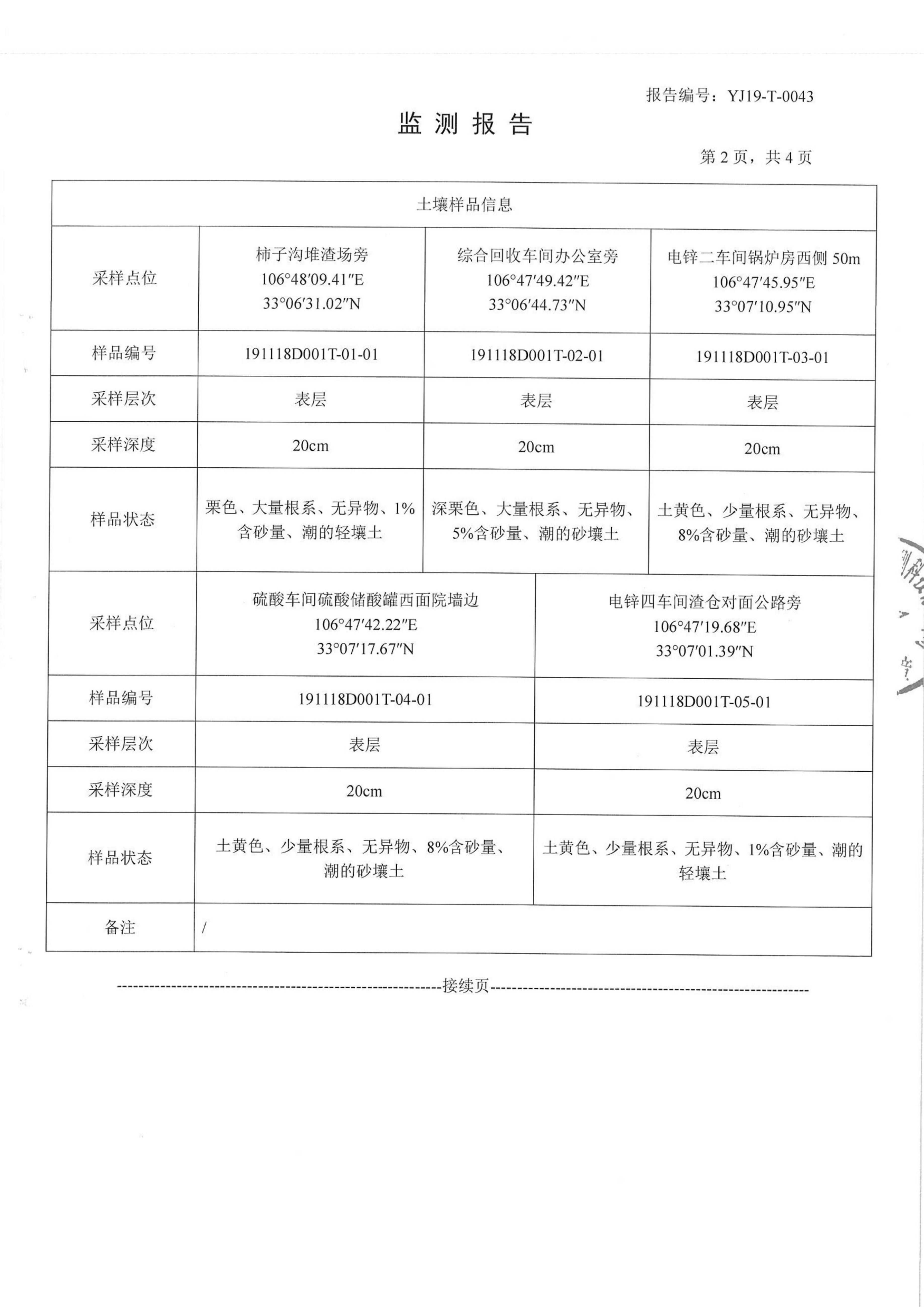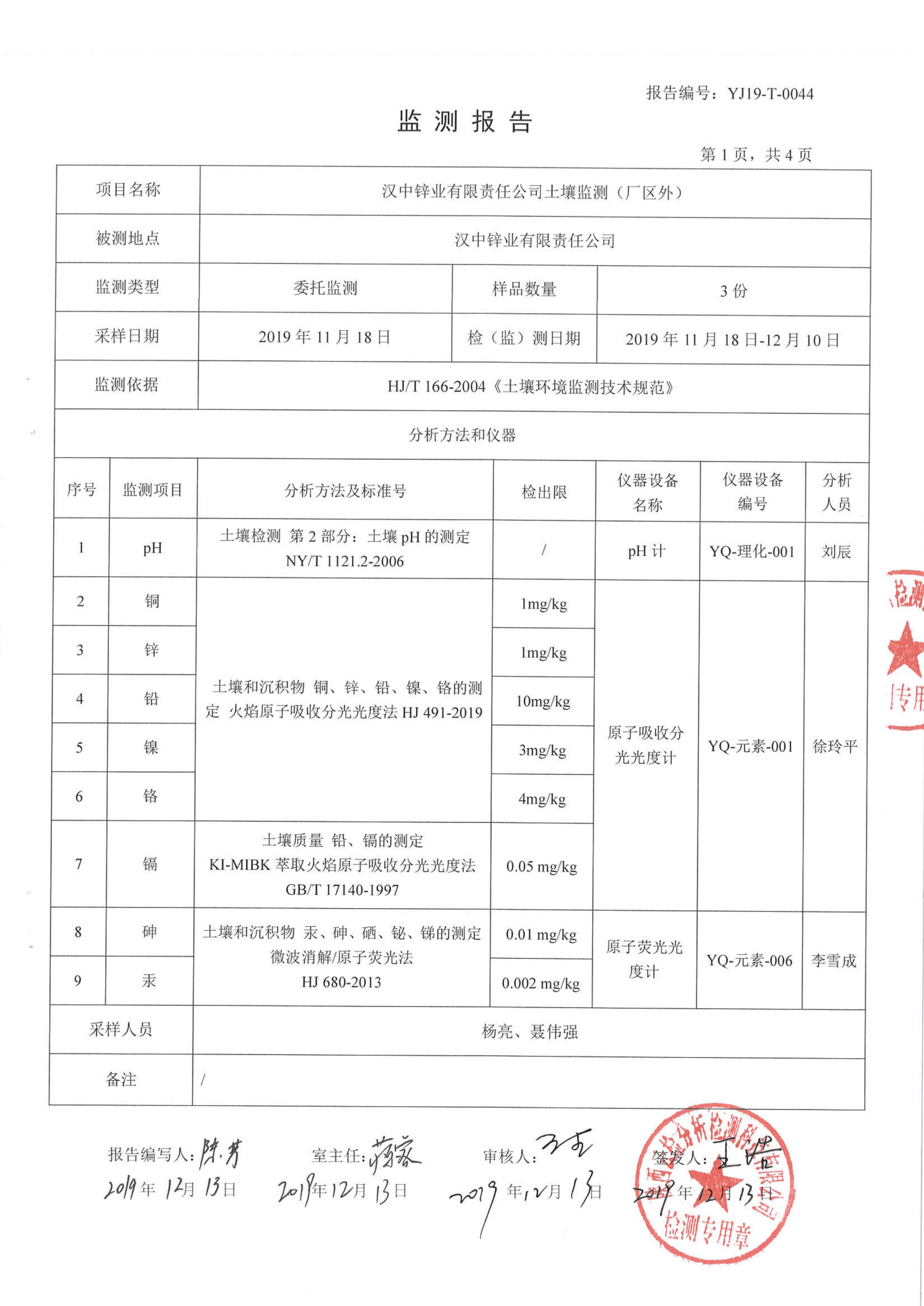 漢中鋅業(yè)有限責(zé)任公司2019年度土壤自行監(jiān)測公示