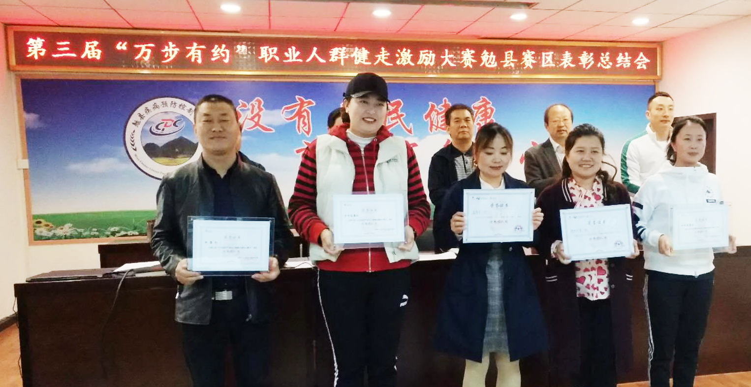 全國第三屆“萬步有約”職業(yè)人群健走激勵(lì)大賽競賽階段已順利結(jié)束。經(jīng)過33個(gè)機(jī)關(guān)單位、31個(gè)團(tuán)隊(duì)567人在整個(gè)100天的比賽中堅(jiān)持不懈的努力,勉縣在參賽的第一年取得了優(yōu)異的成績,在全國31個(gè)省、市、自治區(qū)、直轄市的449個(gè)區(qū)(縣)16263個(gè)行政、企事業(yè)單位13429個(gè)競賽團(tuán)隊(duì)20余萬人參加的大賽中,勉縣榮獲全國優(yōu)秀健走示范區(qū)、全國示范區(qū)優(yōu)秀組織獎(jiǎng)、省級(jí)優(yōu)秀健走示范區(qū)等多項(xiàng)榮譽(yù)稱號(hào)。漢中鋅業(yè)公司派出的兩支參賽隊(duì)伍,每隊(duì)20人,共計(jì)40人,榮獲國家獎(jiǎng)5項(xiàng)、縣級(jí)獎(jiǎng)3項(xiàng)。